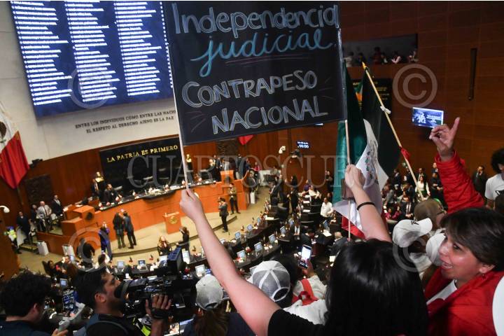CIUDAD DE MÉXICO, 10SEPTIEMBRE2024.- Trabajadores que se manifestaban en contra de la reforma judicial irrumpieron en las instalaciones del Senado de la República para impedir que se siguiera desarrollando la sesión ordinaria en la que se discutía la reforma judicial. FOTO: MARIO JASSO/CUARTOSCURO.COM