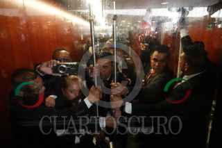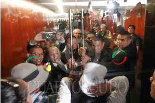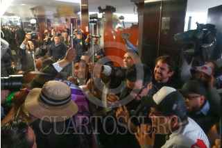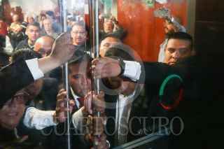 CIUDAD DE MÉXICO, 10SEPTIEMBRE2024.- Personal de resguardo del Senado nada pudo hacer ante el embate de los manifestantes que esta tarde entraron al pleno de la Cámara Alta, cuando se discutía la Reforma al Poder Judicial. Una decena de ellos ni pudo contener la turba que entra a base de empujones hasta el recinto, que fue abandonado por lo senadores de Morena y sus aliados ante esta situación. FOTO: GRACIELA LÓPEZ/CUARTOSCURO.COM