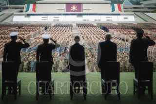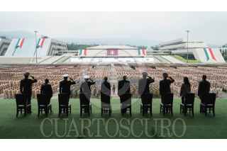 CIUDAD DE MÉXICO, 10SEPTIEMBRE2024.- Claudia Sheinbaum, Presidenta Electa, y Andrés Manuel López Obrador, Presidente de México, realizaron un saludo a las Fuerzas Armadas de México, encabezado por el General Luis Presenció, en el Colegio Militar de Tlalpan. FOTO: PRESIDENCIA/CUARTOSCURO.COM