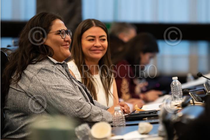 CIUDAD DE MÉXICO, 10SEPTIEMBRE2024.- Las senadores Citlalli Hernández y Sasil Dora Luz De León durante la reanudación de la discusión de la Reforma al Poder Judicial, en la Vieja Casona de Xicoténcatl. Esto luego de que se suspendiera la sesión por la irrupción de manifestantes que se oponen a estos cambios en la sede del Senado de Reforma. FOTO: CUARTOSCURO.COM