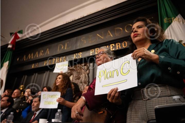 CIUDAD DE MÉXICO, 10SEPTIEMBRE2024.- Senadores de Morena intentan contrarrestar las protestas de los panistas, durante la discusión de la Reforma al Poder Judicial en la Vieja Casona de Xicoténcatl. FOTO: CUARTOSCURO.COM