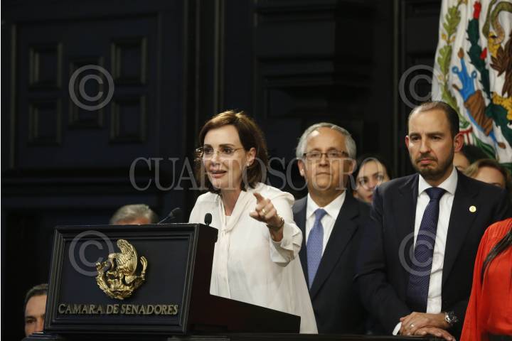 CIUDAD DE MÉXICO, 10SEPTIEMBRE2024.- La senadora Lilly Téllez mostró su rechazo al Poder Judicial durante su discusión en el Senado, que tuvo que sesionar en la Vieja Casona de Xicoténcatl, tras la irrupción de manifestantes en el pleno del Senado, sede Reforma, quieres también mostraron su rechazo a la misma. FOTO: CUARTOSCURO.COM
