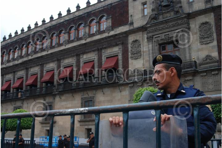 MEXÍCO. D.F. 31AGOSTO2007.- Un pequeño grupo de manifestantes a las afueras de Palacio Nacional, lanzan consignas al Presidente Felipe Calderón, previo a su primer informe de Gobierno. FOTO:CLAUDIA ARÉCHIGA/CUARTOSCURO.COM