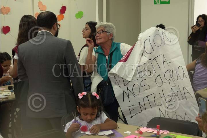 CIUDAD DE MÉXICO, 13SEPTIEMBRE2024.- Una mujer se manifestó con una lona para exigir agua potable al alcalde Raúl Basulto, durante la inauguración de la Utopía Cihuacóatl, conocidacomo la Utopía de las Mujeres, ubicada en la Alcaldía Iztapalapa. FOTO: GRACIELA LÓPEZ/CUARTOSCURO.COM