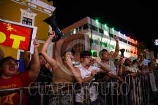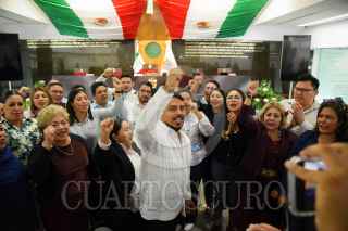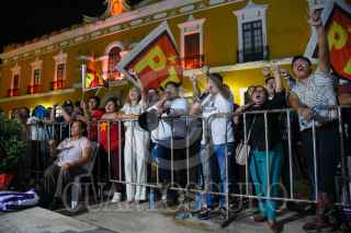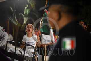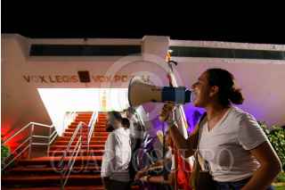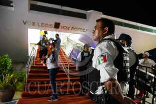 CAMPECHE, CAMPECHE, 12SEPTIEMBRE2024.- La reforma judicial fue debatida en la noche en el congreso del estado de Campeche, y aprobada con 22 votos a favor y 5 en contra. En los alrededores del congreso se concentro una multitud de simpatizantes morenistas y petistas quienes lanzaban porras de apoyo, mientras otra parte la integraban trabajadores del poder judicial quienes se mantenían en protesta. FOTO: MICHAEL BALAM/CUARTOSCURO.COM ...