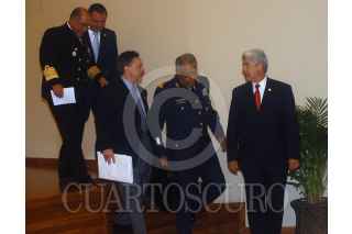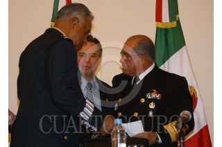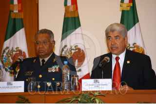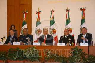 MÉXICO D.F. 31AGOSTO2007.- Guillermo Galván Galván, Secretarío de la Defensa Nacional, Eduardo Medina Mora Procurador del General de la República y Francisco Ramiréz Acuña, Secretarío de Gobernación, Mariano Francisco Saynez Secretarío de Marina y Genaro García Luna Secretarío de Seguridad Pública, altermino de la coferencia donde dierón un informe sobre las actividades de seguridad en el país. FOTO:GUILLERMO PEREA/CUARTOSCURO.COM