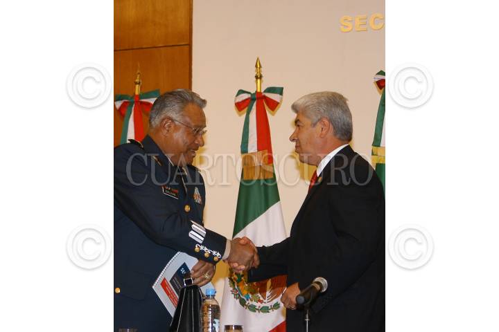 MÉXICO D.F. 31AGOSTO2007.- Guillermo Galván Galván, Secretarío de la Defensa Nacional, Eduardo Medina Mora Procurador del General de la República y Francisco Ramiréz Acuña, Secretarío de Gobernación, Mariano Francisco Saynez Secretarío de Marina y Genaro García Luna Secretarío de Seguridad Pública, altermino de la coferencia donde dierón un informe sobre las actividades de seguridad en el país. FOTO:GUILLERMO PEREA/CUARTOSCURO.COM