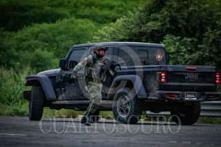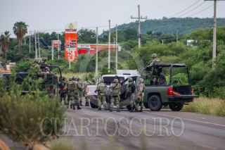 CULIACÁN, SINALOA, 12SEPTIEMBRE2024.- La Secretaría de Seguridad Pública de Sinaloa informó que, tras los hechos ocurridos la tarde de este jueves en la salida sur de Culiacán, sobre la carretera México 15, donde elementos del Ejército Mexicano fueron agredidos, se logró la detención de 11 civiles, así como el aseguramiento de 11 armas de fuego y 3 vehículos, los cuales fueron puestos a disposición de las autoridades correspondientes. El elemento del Ejército Mexicano que resultó lesionado se encuentra estable. FOTO: JOSÉ BETANZOS/CUARTOSCURO.COM