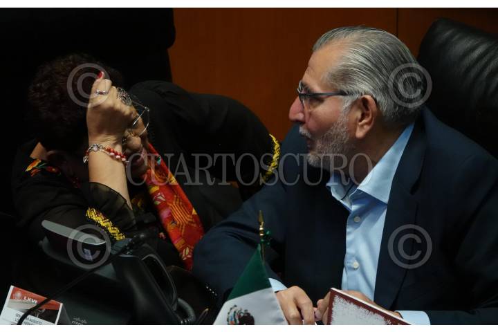 CIUDAD DE MÉXICO, 13SEPTIEMBRE2024.- La senadora Ernestina Godoy y el coordinador morenista Adán Augusto López durante la sesión en la que se decreto y envio a la Cámara de Diputados la propuesta de Reforma al Poder Judicial tras ser aprobada en 21 de los congresos estatales. FOTO: GALO CAÑAS/CUARTOSCURO.COM