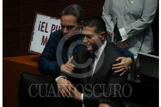 CIUDAD DE MÉXICO, 13SEPTIEMBRE2024.- Los senadorss morenistas Ricardo Sheffield y Alejandro Esquer durante la sesión en la que se decreto y envio a la Cámara de Diputados la propuesta de Reforma al Poder Judicial tras ser aprobada en 21 de los congresos estatales. FOTO: GALO CAÑAS/CUARTOSCURO.COM