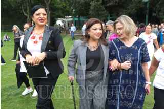 CIUDAD DE MÉXICO, 13SEPTIEMBRE2024. Clara Brugada y Alejandra Frausto a su salida del encuentro nacional de Mujeres por la Igualdad Sustantiva y el Complejo Cultural Los Pinos. Bienestar. FOTO: EDGAR NEGRETE LIRA/CUARTOSCURO.COM