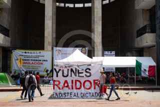 TUXTLA GUTIÉRREZ, CHIAPAS, 13SEPTIEMBRE2924.- Trabajadores del poder judicial mantienen un plantón en las inmediaciones del palacio de justicia del estado. FOTO: ISABEL MATEOS /CUARTOSCURO.COM