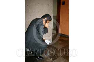 MÉXICO,D,F., 31AGOSTO2007.-Manuel Espino Presidente Nacional del PAN momentos después de la conferencia de presa que ofrecio acompañado por legisladores panistas en donde acusaron directamente al gobernador de Veracuz Fidel Herrera de las personas que han aparecido sin vida en el estado, FOTO:SASHENKA GUTIERREZ/CUARTOSCURO.COM
