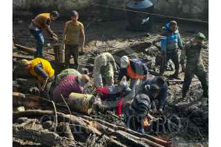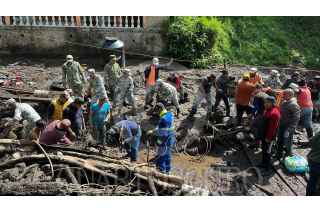 JILOTZINGO, ESTADO DE MÉXICO, 14SEPTIEMBRE2024.- Personal del Ejército Mexicano, GN y Marina se encuentran realizando labores de búsqueda de personas que fueron sepultadas al registrarse el desgajamiento de un cerro la noche del viernes en el paraje de Dongu, colonia San Luis Ayucan en el municipio de Jilotzingo, hasta el momento se han rescatado a tres personas con vida y el cuerpo de una menor sin vida. FOTO: ESPECIAL /CUARTOSCURO