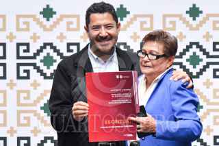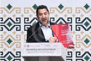 CIUDAD DE MÉXICO, 14SEPTIEMBRE2024.- Martí Batres, jefe de Gobierno, encabezó la entrega de escrituras a vecinos de la unidad "El Biatlón" en Iztapalapa. El evento fue realizado en el patio principal del Antiguo Palacio del Ayuntamiento. FOTO: MARIO JASSO/CUARTOSCURO.COM