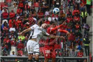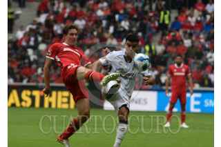 TOLUCA, ESTADO DE MÉXICO, 14SEPTIEMBRE2024.- Marcel Ruiz medio de los Diablos de Toluca e Iván Tona medio de los Xolos de Tijuana, en encuentro culminó con un marcador 4-0, en el partido correspondiente a la jornada 7 del Torneo Apertura de la Liga MX. FOTO: CRISANTA ESPINOSA AGUILAR /CUARTOSCURO.COM