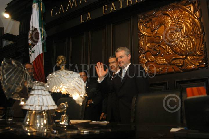 MÉXICO D.F 31AGOSTO2007.-Los Senadores se felicitan después de rendir protesta como integrantes de la nueva mesa direntiva del Sendo de la República. FOTO:GUILLERMO PEREA/CUARTOSCURO.COM