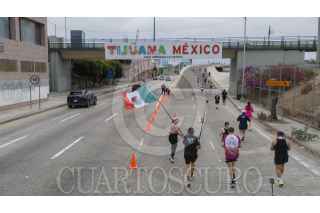 TIJUANA, BAJA CALIFORNIA, 15SEPTIEMBRE2024.- Estados Unidos y México se unieron esta mañana en una carrera de medio maratón que cruzó las fronteras. El “Binational Race” que dio inicio en punto de las 6:30 a.m. en la Plaza American Premium Outlets en el lado americano y termino en el faro de playas de Tijuana. Tras cruzar la garita del Chaparral, los corredores fueron recibidos con mariachi, por lo que algunos bajaban la velocidad para bailar al ritmo de la música mexicana y uno que otro se detuvo por completo para tomarse una foto. Edd López de San Diego, California, fue el primero en llegar a la meta con un tiempo de 1 hora, 14 minutos y 59 segundos. Mientras que la primer mujer fue Mary Ross Bernal hizo un tiempo de 1 hora, 30 minutos y 15 segundos. Música, comida y arte, recibieron a los corredores en la meta de Playas de Tijuana con el propósito de promover la cultura de ambos países vecinos. En el lugar un servicio de transporte estuvo disponible para llevar a los participantes que residen en Estado México hacia el puerto de San Ysidro. FOTO: OMAR MARTÍNEZ/ CUARTOSCURO.COM