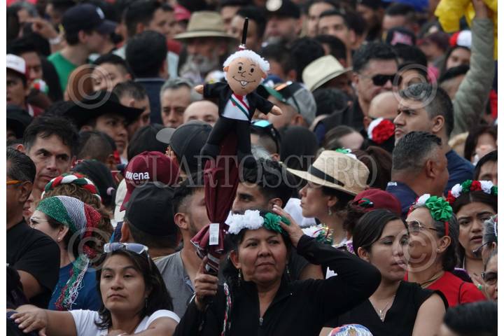 CIUDAD DE MÉXICO, 16SEPTIEMBRE2024.- Cientos de simpatizantes de Andrés Manuel López Obrador, presidente de México, acudieron al Grito en el marco del 209 Aniversario del inicio de la Independencia de México FOTO: GRACIELA LÓPEZ /CUARTOSCURO.COM