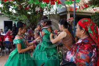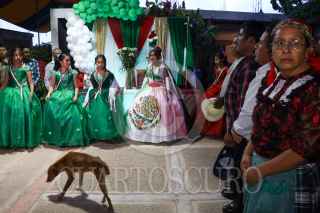 SAN BARTOLOMÉ QUIALANA, OAXACA, 15SEPTIEMBRE2024.- Para los pobladores de San Bartolomé Quialana, municipio zapoteca ubicado a 39 kilómetros de la capital de Oaxaca, las Fiestas Patrias son una festividad en la que se recuerda a los héroes independentistas y se trabaja en comunidad para llevar a cabo la festividad. El festejo inicia con la elección de la Señorita América y su coro. Previo al desfile patriótico y el Grito de Independencia que se lleva a cabo en el centro de la población, familiares y padrinos de la Señorita America elaboran alimentos que serán compartidos con la autoridad municipal. A las 18:00 horas, autoridades arriban al domicilio de la América para escoltarla al recorrido por las calles de la población y posteriormente llegar a la cancha municipal en donde se lleva a cabo la ceremonia cívica y el Grito de Independencia. San Bartolomé Quialana, es una comunidad con alto índice de migración, sin embargo conservan sus tradiciones ancestrales y el uso de su lengua indígena, incluso entonan el himno nacional en zapoteco. FOTO: CAROLINA JIMÉNEZ/CUARTOSCURO.COM