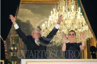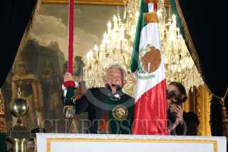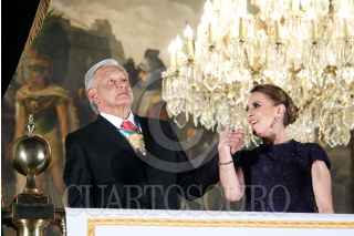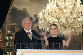 CIUDAD DE MÉXICO, 15SEPTIEMBRE2024.- Andrés Manuel López Obrador, Presidente de México, y su esposa Beatriz Gutiérrez Müller, encabezaron el 6to y último Grito de la Independencia en el Zócalo. Los acompañaron Claudia Sheinbaum, Presidenta Electa de México. FOTO: GRACIELA LÓPEZ/CUARTOSCURO.COM