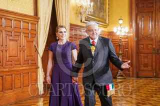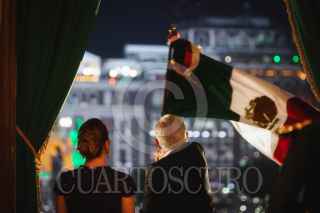 CIUDAD DE MÉXICO, 15SEPTIEMBRE2024.- Andrés Manuel López Obrador, Presidente de México, y su esposa Beatriz Gutiérrez Müller, encabezaron el 6to y último Grito de la Independencia en el Zócalo. Los acompañaron Claudia Sheinbaum, Presidenta Electa de México. FOTO: PRESIDENCIA/CUARTOSCURO.COM