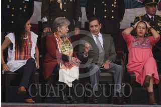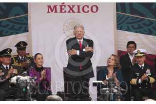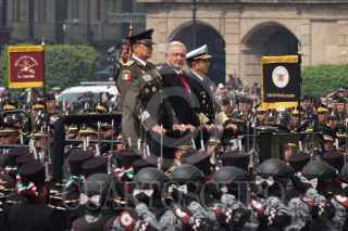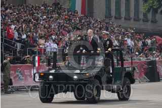 CIUDAD DE MÉXICO, 16SEPTIEMBRE2024.- En el marco de 214 Aniversario de la Independencia de México, Luis Cresencio Sandoval, secretario la Defensa Nacional; Andrés Manuel López Obrador, presidente de México, y Rafael Ojeda, secretario de Marina, encabezaron el Pase de Revista previo al Desfile Militar en el Zócalo capitalino. FOTO: GRACIELA LÓPEZ /CUARTOSCURO.COM