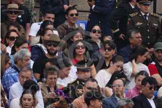 CIUDAD DE MÉXICO, 16SEPTIEMBRE2024.- Leonardo Aguilar, Ángela Aguilar y su esposo Cristian Nodal, asistieron a disfrutar del Desfile Militar en el Zócalo capitalino. FOTO: GRACIELA LÓPEZ /CUARTOSCURO.COM