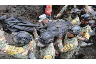 JILOTZINGO, ESTADO DE MÉXICO, 16SEPTIEMBRE2024.- Con saldo de nueve personas muertas concluyeron los trabajos de rescate en la zona del desgajamiento del Cerro La Peña. El día de hoy soldados y Protección Civil del Estado de México logaron sacar los restos de cuatro adultos y dos menores de edad. FOTO: CUARTOSCURO.COM