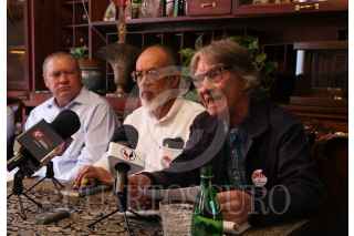 ZACATECAS, ZACATECAS, 17SEPTIEMBRE2024.- Javier Calzada, ex diputado y catedrático de la UAZ, Juan Francisco Valerio y Rodolfo Garcia Zamora, académicos e investigadores de las UAZ; a nombre de la asociación Ciudadanía Participativa de Zacatecas, realizaron una conferencia de prensa para informar de la entrega de un documento a legisladores locales sobre los motivos técnico jurídicos del por qué no se debe de construir el Segundo Piso del Bulevar Adolfo López Mateos, principal avenida de la capital zacatecana. FOTO: ADOLFO VLADIMIR /CUARTOSCURO.COM