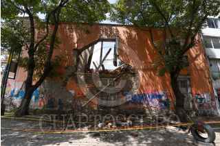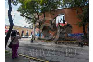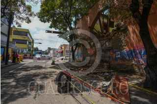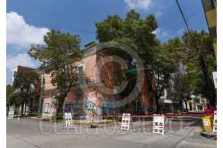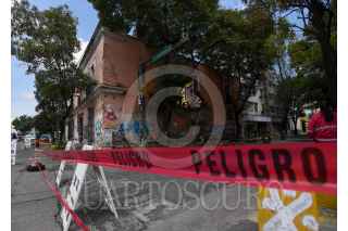 TOLUCA, ESTADO DE MÉXICO, 17SEPTIEMBRE2024.- Continúa colapsando la fachada de una vieja casa ubicada en la avenida Bravo esquina con Instituto Literario en el centro de Toluca, la cual por las lluvias recientes ha sufrido varios daños, PC de Toluca acordono la zona y cerro la circulación de dicha calle a vehículos para evitar algún accidente. FOTO: CRISANTA ESPINOSA AGUILAR /CUARTOSCURO.COM