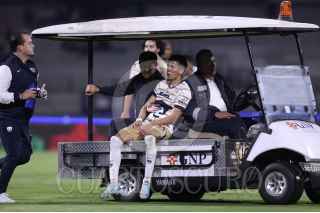 CIUDAD DE MÉXICO, 17SEPTIEMBRE2024. Jorge Ruvalcaba sale por lesión del partido de fútbol Pumas vs Puebla correspondiente a la jornada 8 del Torneo Apertura 2024 de Liga BBVA MX, en el Estadio Olímpico Universitario. FOTO: EDGAR NEGRETE LIRA/CUARTOSCURO.COM