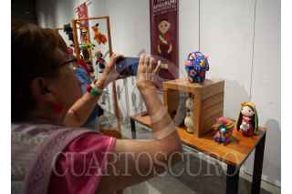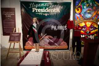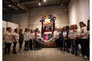 CIUDAD DE MÉXICO, 18SEPTIEMBRE2024.- Javier Hidalgo, Coordinador General del Subsistema de Educación Comunitaria PILARES y mujeres de los pilares Chabacano y viaducto encabezaron la Develación de la presidenta Claudia Sheinbaum (tamaño real) y la muñeca Lele monumental más grande del mundo estilo amigurumi en una exposición con 160 piezas en el Centro Cultural El Rule. FOTO: ANDREA MURCIA /CUARTOSCURO.COM