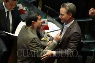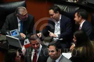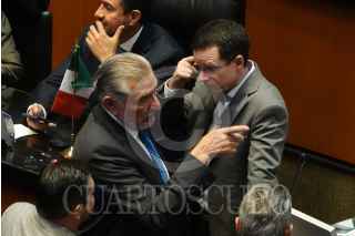 CIUDAD DE MÉXICO, 18SEPTIEMBRE2024.- Los senadores Adán Augusto, Clemente Castañeda e Ignacio Mier conversaron durante la Sesión Ordinaria en la que se discutió el decreto por el que se Reforma la fracción VII del artículo 74 de la Ley Federal del Trabajo. FOTO: GRACIELA LÓPEZ /CUARTOSCURO.COM