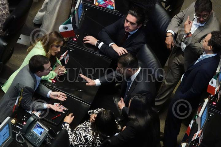 CIUDAD DE MÉXICO, 18SEPTIEMBRE2024.- Los senadores Ricardo Anaya (PAN), Omar García Harfuch (Morena) y Citlalli Hernández (Morena) conversaron durante la Sesión Ordinaria en la que se discutió el decreto por el que se Reforma la fracción VII del artículo 74 de la Ley Federal del Trabajo. FOTO: GRACIELA LÓPEZ /CUARTOSCURO.COM