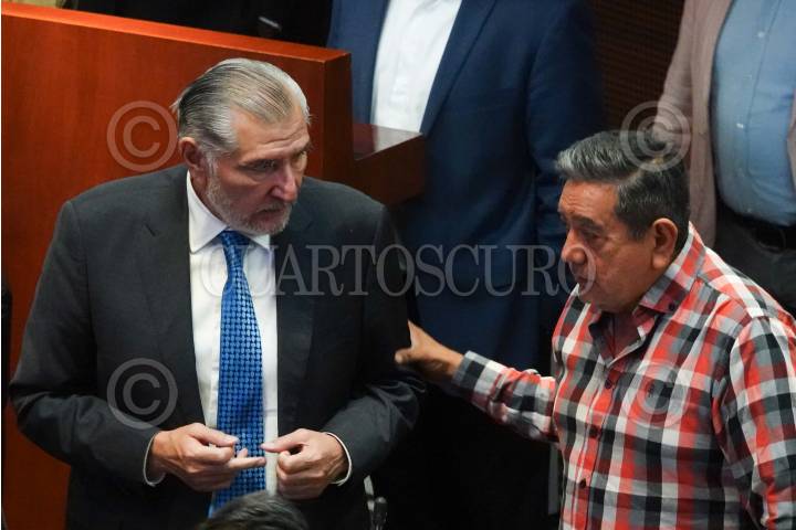 CIUDAD DE MÉXICO, 18SEPTIEMBRE2024.- Los senadores Adán Augusto y Félix Salgado Macedonio se saludaron al llegar a la Sesión Ordinaria en la que se discutió el decreto por el que se Reforma la fracción VII del artículo 74 de la Ley Federal del Trabajo. FOTO: GRACIELA LÓPEZ /CUARTOSCURO.COM