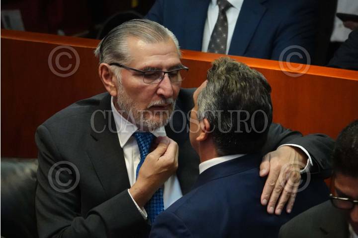 CIUDAD DE MÉXICO, 18SEPTIEMBRE2024.- Los senadores Adán Augusto y Alejandro Moreno, durante la Sesión Ordinaria en la que se discutió el decreto por el que se Reforma la fracción VII del artículo 74 de la Ley Federal del Trabajo. FOTO: GRACIELA LÓPEZ /CUARTOSCURO.COM