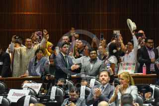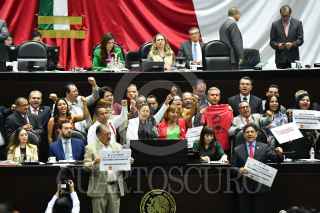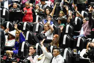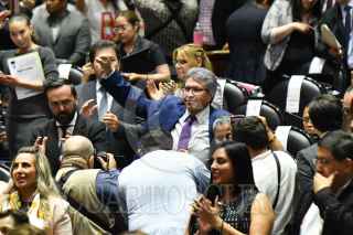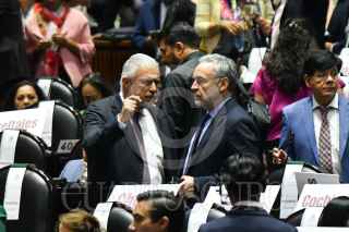 CIUDAD DE MÉXICO, 18SEPTIEMBRE2024.- Los diputados de Morena: José Narro Céspedes, y Alfonso Ramírez Cuéllar, durante la sesión ordinaria de la Cámara de Diputados en la que se aprobó la reforma que planea reconocer a los pueblos y comunidades indígenas y afromexicanos, como sujetos de derecho público. FOTO: MARIO JASSO/CUARTOSCURO.COM