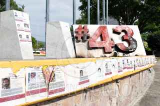 CHILPANCINGO, GUERRERO, 18SEPTIEMBRE2024.- Por segunda ocasión personas desconocidas incendiaron el Antimonumento a los 43, ubicado en la glorieta de Las Banderas, en Chilpancingo. El 17 de septiembre del 2022 fue la primer ocasión en que fue incendiado el antimonumento, al cumplirse un año de que un autobús, en el que viajaban estudiantes de la Normal de Ayotzinapa, se impactó contra un auto en el que viajaba el maestro de artes marciales, Jacinto Palacios y su acompañante, Raquel Acosta, en el libramiento a Tixtla. Hace 2 años en redes sociales círculo un vídeo en el que se aprecian a dos personas que, en la madrugada, prendieron fuego al antimonumento La noche de este martes 17 de septiembre, de la misma forma, personas desconocidas prendieron fuego al mismo, pero poco después de las 8 de la noche, por lo que personas que circularon por esa zona empezaron a publicar videos en sus redes sociales. FOTO: DASSAEV TÉLLEZ ADAME/CUARTOSCURO.COM