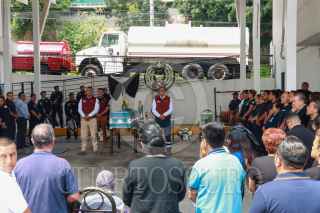 NAUCALPAN, ESTADO DE MÉXICO, 18SEPTIEMBRE2024.- Compañeros y familiares del fotógrafo bombero que trabajaba en Protección Civil de Naucalpan lo velaron está tarde, el elemento murió cuando se encontraba trabajando en los deslaves de la colonia San Rafael Chamapa. FOTO: ROGELIO MORALES/CUARTOSCURO.COM