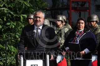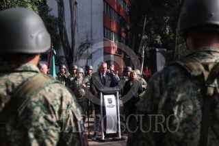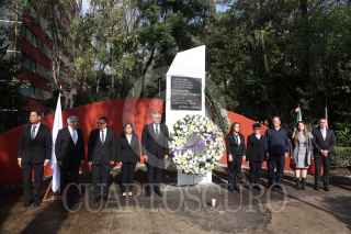 CIUDAD DE MÉXICO, 19SEPTIEMBRE2024. El alcalde de Cuauhtémoc, Raúl Ortega Rodríguez junto a miembros de su gabinete durante la ceremonia de conmemoración de los sismos de 1985 y 2017, en la “Huella del Nuevo León” ubicada en la Unidad Habitacional Tlatelolco. FOTO: EDGAR NEGRETE LIRA/CUARTOSCURO.COM FOTO: EDGAR NEGRETE LIRA/CUARTOSCURO.COM