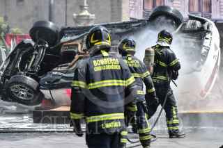 CIUDAD DE MÉXICO, 19SEPTIEMBRE2024.- Personal del Heroico Cuerpo de Bomberos de la Ciudad de México durante su participación en el simulacro realizado en el marco del aniversario de los sismos de 1985 y 2017. El macro simulacro se realiza con el propósito de fomentar la cultura de la protección civil en la población y contribuir con el fortalecimiento de las capacidades de reacción ante dichos fenómeno natural. FOTO: MARIO JASSO/CUARTOSCURO.COM