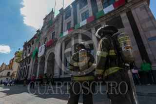 TOLUCA, ESTADO DE MÉXICO, 19SEPTIEMBRE2024.- En el marco del Día Nacional de Protección Civil servidores públicos y ciudadanos que se encontraban en la zona centro de Toluca participaron en el Simulacro Nacional 2024, como una forma de fomentar la cultura de la protección civil y en memoria de los sismos ocurridos en 1985 y 2017. FOTO: CRISANTA ESPINOSA AGUILAR /CUARTOSCURO.COM