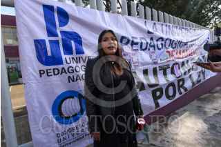 TOLUCA, ESTADO DE MÉXICO, 19SEPTIEMBRE2024.- Alaide Villagómez, docente de la Universidad Pedagógica Nacional 151 Toluca denunció violencia institucional, acoso, hostigamiento, intimidación y represión por parte de las autoridades institucionales, habló en nombre propio, de estudiantes y maestros que han sufrido estas acciones y exigió la destitución del director de la UPN. FOTO: CRISANTA ESPINOSA AGUILAR /CUARTOSCURO.COM