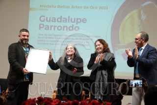 CIUDAD DE MÉXICO, 19SEPTIEMBRE2024.- La pianista Guadalupe Parrondo tocó una melodía durante la entrega de su Medalla Bellas Artes de Oro en la disciplina de Música en la Sala Manuel M. Ponce del Palacio de Bellas Artes. FOTO: GRACIELA LÓPEZ /CUARTOSCURO.COM