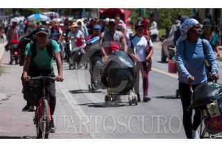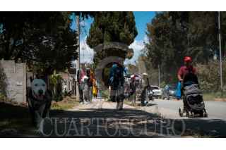 NATIVITAS, TLAXCALA, 20SEPTIEMBRE2024.- Un grupo de aproximadamente 500 a 600 personas en situación migrante procedentes de: Nicaragua, Honduras, África, entre otros países se dirige hacia San Martín Texmelucan después de pasar la noche en una comunidad de Nativitas, Tlaxcala. Las y los caminantes que viajan a pie o en bicicletas llegaron a la iglesia de San Rafael, la noche del pasado 19 de septiembre, donde se refugiaron y descansaron. FOTO: ALAIN HERNÁNDEZ/CUARTOSCURO.COM