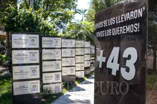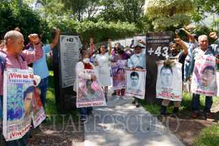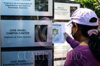 CHILPANCINGO, GUERRERO, 21SEPTIEMBRE2024.- Padres de los 43 y estudiantes de la normal de Ayotzinapa asistieron a la inauguración del memorial “Verdad y Justicia” que instaló el gobierno municipal de Chilpancingo en la glorieta de Las Banderas, en este espacio se contienen pequeñas biografías de los desaparecidos de la Normal y un breve relato de lo que pasó la noche del 26 de septiembre del 2014 en Iguala. FOTO: DASSAEV TÉLLEZ ADAME/CUATOSCURO.COM