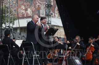 CIUDAD DE MÉXICO, 21SEPTIEMBRE2024. Los tenores José Luis Ordóñez y Alfonso Navarrete participaron de la celebración del 114 aniversario de la Universidad Nacional Autónoma de México (UNAM) con la Orquesta Sinfónica de Minería en un gran concierto, en Las Islas de Ciudad Universitaria. Comunidad universitaria y público en general disfrutaron de este concierto que abarcó desde musica clásica hasta obras de la cultura popular y folklor mexicano. FOTO: EDGAR NEGRETE LIRA/CUARTOSCURO.COM