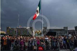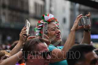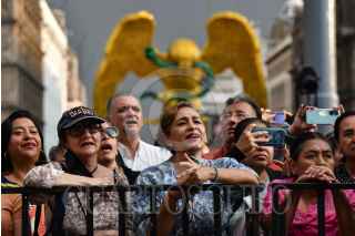 CIUDAD DE MÉXICO, 21AGOSTO2024.- Un grupo de personas cantan y observan el festival de música "Zócalo, lindo y querido. Maratón de mariachis de la Ciudad de México" realizado en el zócalo capitalino. FOTO: MARIO JASSO/CUARTOSCURO.COM