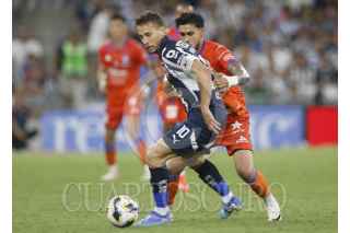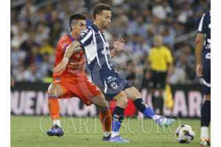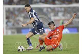 GUADALUPE, NUEVO LEÓN, 21SEPTIEMBRE2024.- Jesús Corona de los Rayados del Monterrey, se disputa el balón con Jesús Escoboza de Mazatlán, en el estadio BBVA, partido correspondiente a la jornada 8 de la Apertura 2024 de la Liga Mx. Marcador Final: Monterrey: 0 - Mazatlán: 0. FOTO: GABRIELA PÉREZ MONTIEL / CUARTOSCURO.COM